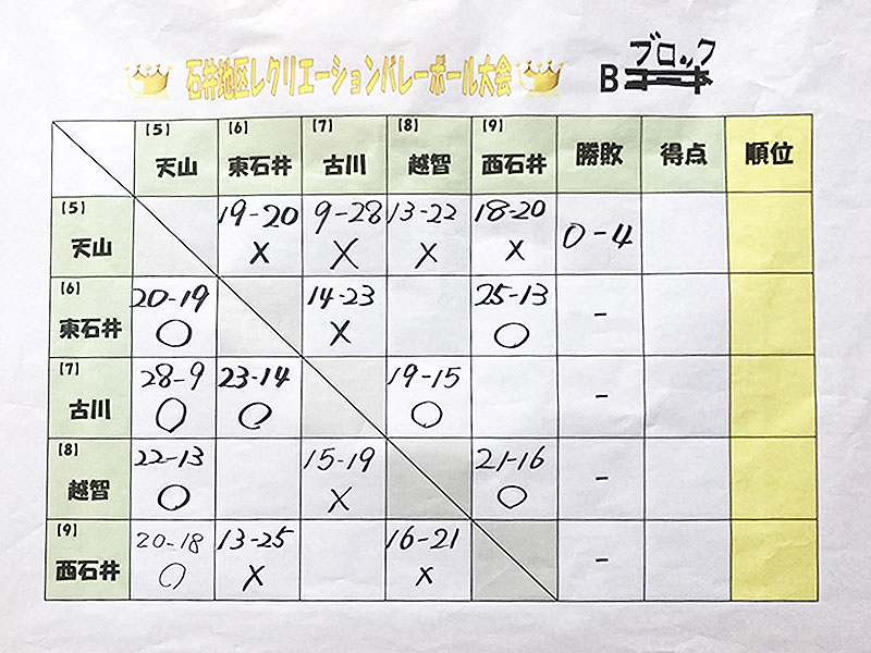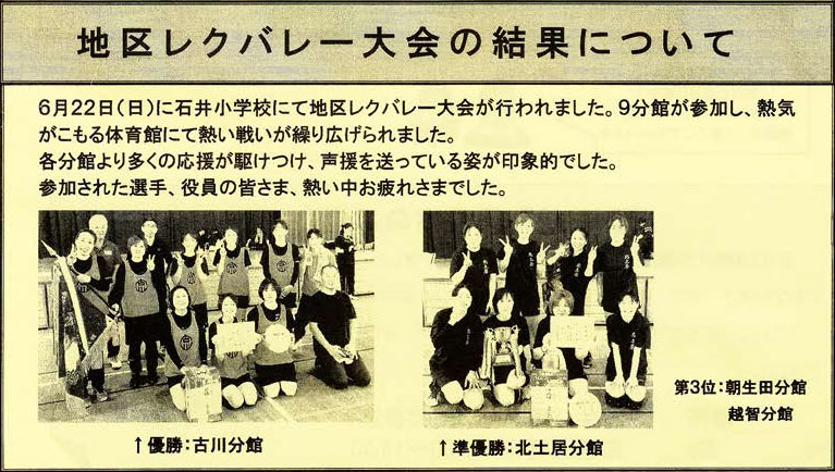 令和7年度 石井地区レクレーションバレーボール大会 実施要項 石井小学校の体育館で行われたレクバレー。 なんと、体育館の気温は35℃まで上昇!熱気ムンムンの大会でした。 和泉南公民館は残念ながら2敗で終わりましたが、怪我なく楽しい大会でした!