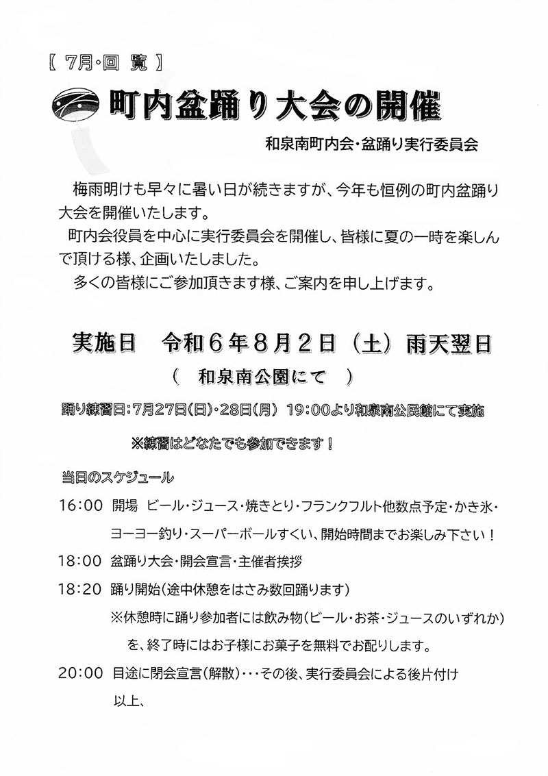 蝉しぐれの降りそそぐ8月2日、和泉南町内会の盆踊り大会が開催されました。