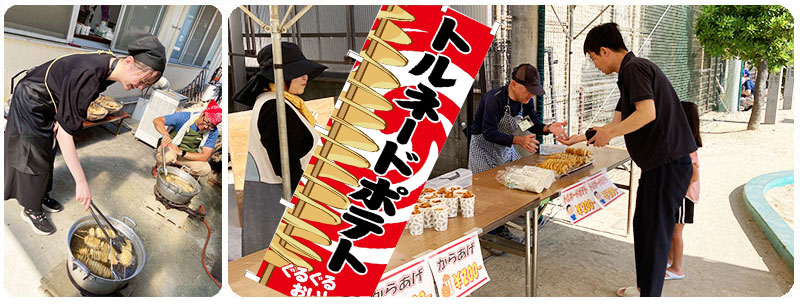 唐揚げ、ポテトの他には昨年も販売しました、「フランクフルト」と「かき氷」も好評で、フランクフルトは用意した250本完売でした!