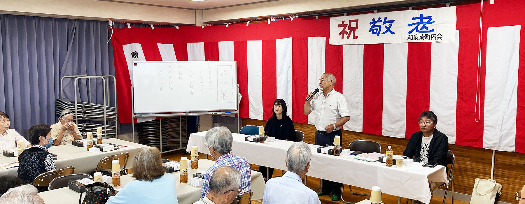 9月14日11時から和泉南公民館2階において、町内敬老祝賀会が開催されました。